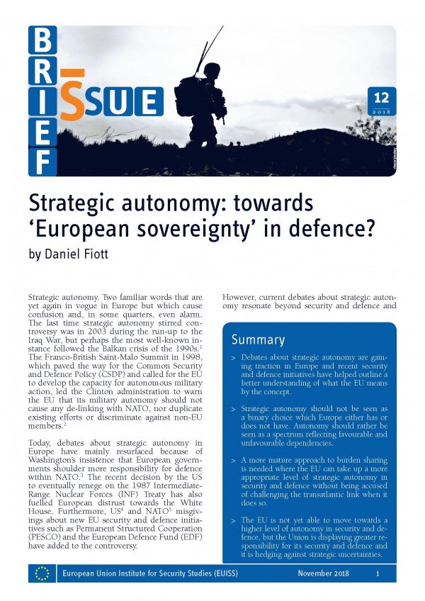 Strategic autonomy [Recurso electrónico]PDF Daniel Fiott : towards ‘European sovereignty’ in defence?