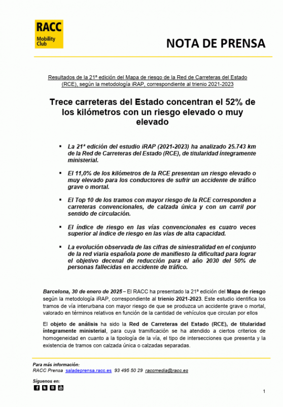 Estudio iRAP . Mapa de riesgo de la Red de Carreteras del Estado (2021-2023)